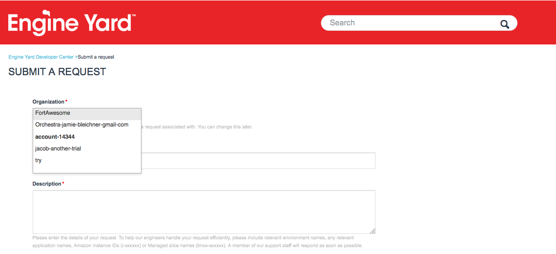 There are many users who belong to multiple organizations, and until now, those customers were required to create a unique login for each Organization in the ticketing system. We are happy to announce that we are rolling out a Multi-Org function, which allows a single email address (your Engine Yard SSO email) to be associated with all of your accounts.