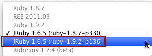 Now, when you create an environment for a JRuby runtime, you can select JRuby that is compatible with Ruby 1.9.2.