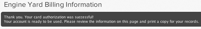 If Engine Yard does not have billing information associated with this account, then you are directed to the billing page.