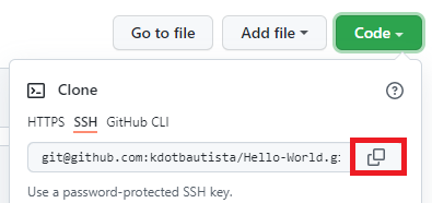 - Click SSH, and then 'copy to dashboard' button (see outlined button below)