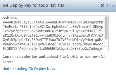 If you use a private repository, set up your git deploy key. Engine Yard automatically generates a deploy key for applications with private repositories.