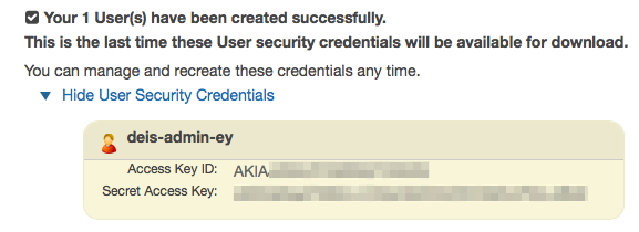 AWS enables user creation within an account, and the access key and secret key are analogous to username/password. After you create a user on AWS, store the access key and secret key in a secure place and enter those values on the Engine Yard platform. These credentials are treated with utmost security.