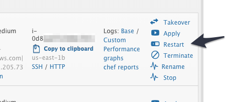 - When an instance is restarted, the public and/or private IP can change. An environment wide Chef run should automatically run when the instance restarts in order to update all records, but should you find any misconfiguration then an Apply will update the configuration correctly.
