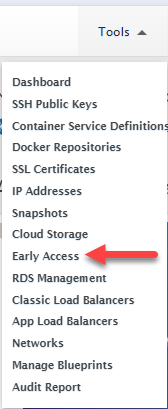 2. On the dashboard, click Tools > Early Access on the toolbar.
