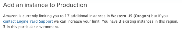 If you need to increase your limit, click the link to submit a ticket with Engine Yard Support.
