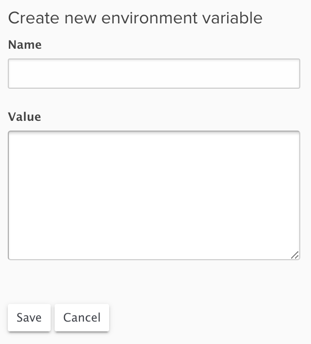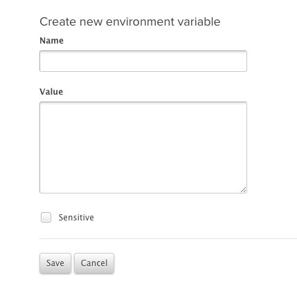 The Environment Variables page will list any existing variables, and new ones can be added using the New Variable button. Enter the Name and Value. For variables that are for Chef use only you can prevent them being passed to the application by prefixing the variable name with EY_.