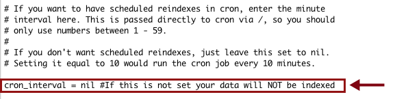 cron_interval=10reindexes your data every 10 minutes.