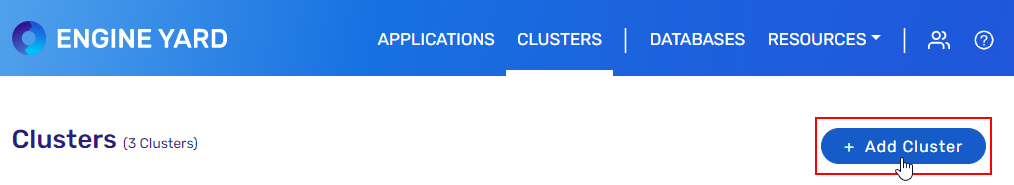 - Organization: Most EYK users will have just one selection here. However, if you are a consultant who has done work for multiple Engine Yard customers, you may have more than one selection here and will need to select the appropriate Organization to associate the cluster with.
