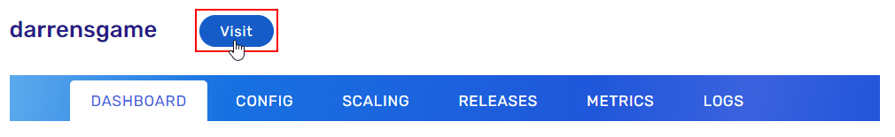 - After your application has finished deploying with the new Domain and/or SSL settings, verify by clicking the Visit button next to your application's Name at the top of the page