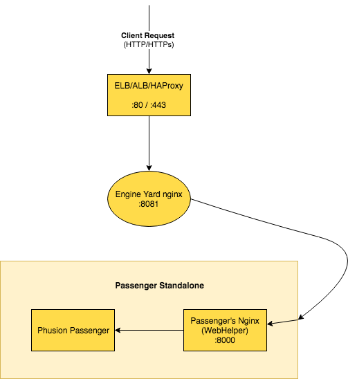 Engine Yard utilizes Phusion Passenger Standalone in conjunction with nginx on Stack V5 (16.06) of the platform. Customers have the option to choose between Passenger5, Puma and Unicorn but this article is focusing on Phusion Passenger Standalone explaining the interconnection between processes and providing useful information during troubleshooting sessions.
