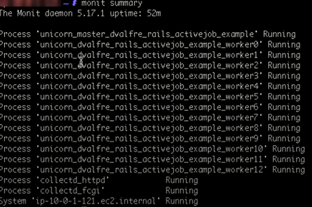 monit summary, to verify that all processes are running correctly according to monit.